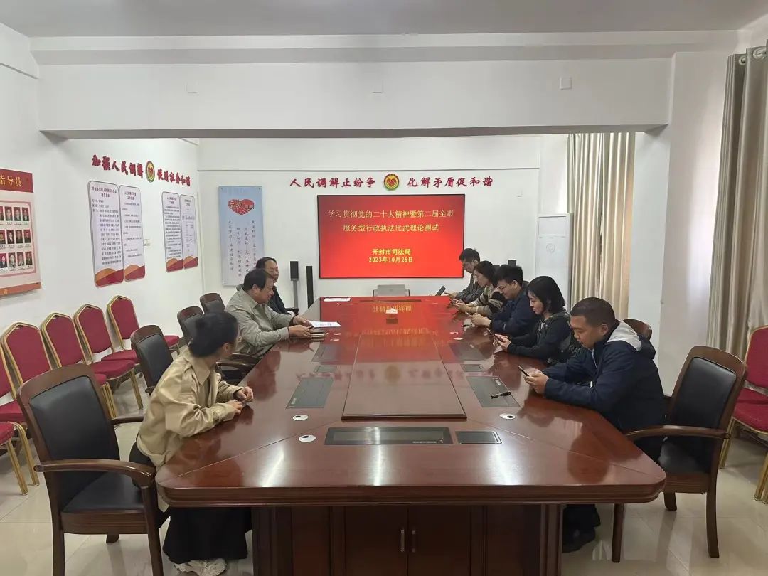 为贯彻落实党的二十大精神,进一步提升行政执法人员法律素养和执法业务水平,深化服务型行政执法建设,10月26日,开封市司法局按照市法治政府建设领导小组办公室的统一安排,组织5名行政执法人员参加学习贯彻党的二十大精神暨第二届全市服务型行政执法比武理论测试活动。