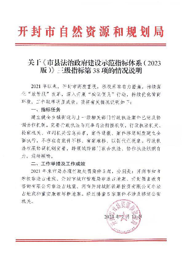 关于《市县法治政府建设示范指标体系(2023版)》三级指标第38项情况说明