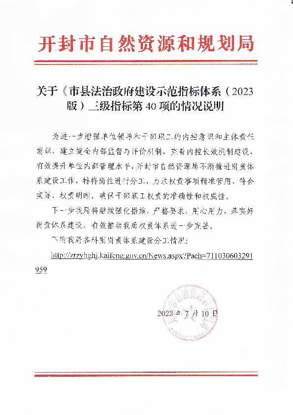 关于《市县法治政府建设示范指标体系(2023版)》三级指标第40项的情况说明