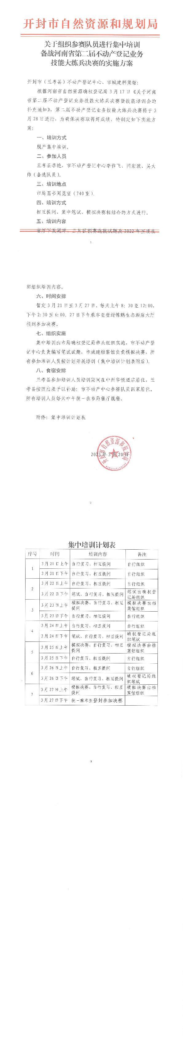 关于组织参赛队员进行集中培训备战河南省第二届不动产登记业务技能大练兵决赛的实施方案