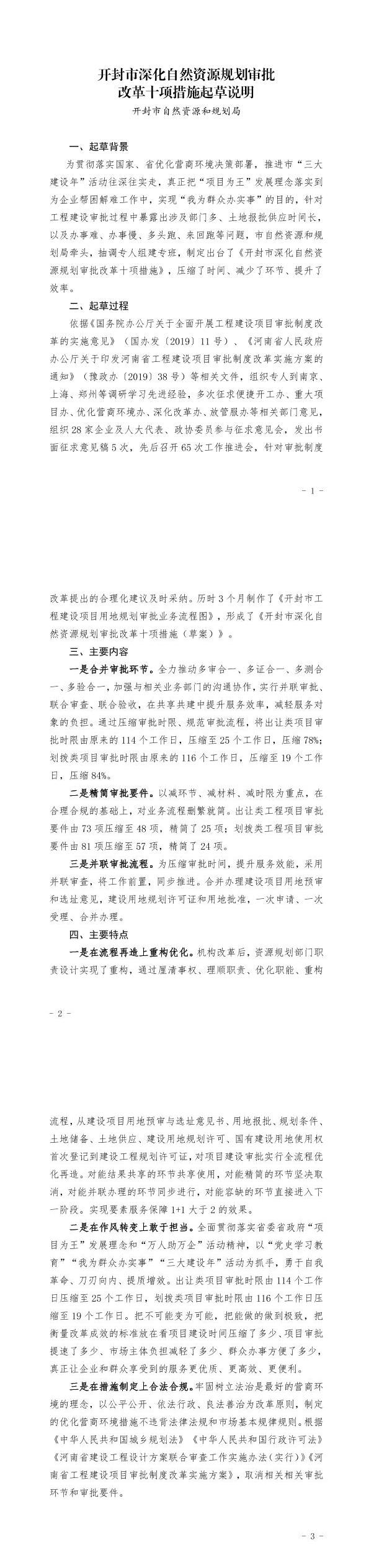 开封市深化自然资源规划审批改革十项措施起草说明